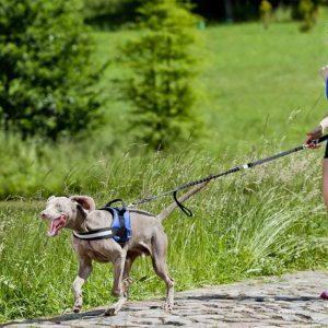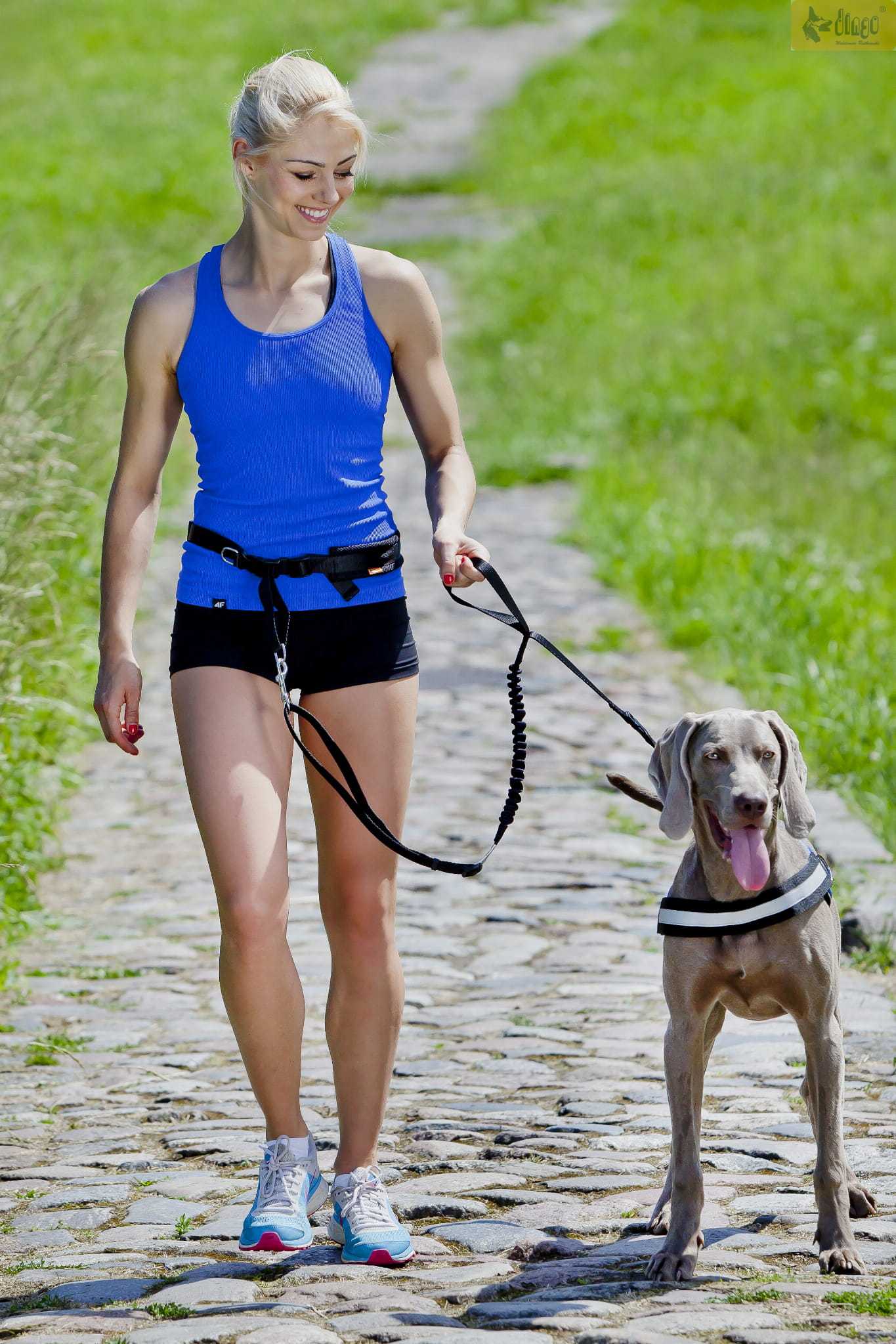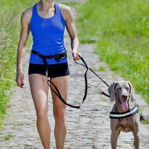 Tekaški pas + povodec z blažilnikom (bungee) je izdelek za tek s psom ali sprehod. Njegova največja prednost je, da vam ni treba držati povodca v roki. Poleg tega je pas oblazinjen, zaradi česar so nenadni sunki manj občutni. Na obeh straneh zaključen s pritrdilnim karabinom – eden za pritrditev pasu, drugi za pritrditev psa. Povodec ima ročaj za držanje psa. Dolžina povodca je nastavljiva s priročnim drsnikom. Pas pasu je nastavljiv tudi od približno 70 do 130 cm. Odsevni element vas bo naredil vidne in varne. Pritrditev pasu s klikom je hitro in enostavno. Nahaja se spredaj in je dvojno trpežen. Obloga iz mehkih in dihajočih vlaken iz polipropilenskih vlaken – mreža.