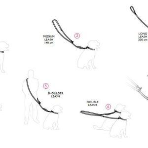 Nastavljiv povodec 7 v 1 je odlična izbira za vsakodnevne sprehode. Idealen je za odrasle pse in mladičke, ki se učijo hoditi na povodcu. Ima nastavitev dolžine, zahvaljujoč kateri ga lahko prilagodimo vsaki situaciji. Ko naj bo pes blizu, na primer pri prečkanju ulice ali mimoidočih, lahko nastavljiv povodec pritrdite na najmanjšo dolžino, to je 115 cm. Če lahko dovolite več svobode, lahko povodec pritrdite na dolžino 140 cm, medtem ko je popolnoma odpet, lahko dobite povodec dolžine 2m, ki psu omogoča prosto uporabo in uporabo območja brez vlečenja vodnika. Idealen je za mladičke, ki so še zelo radovedni.