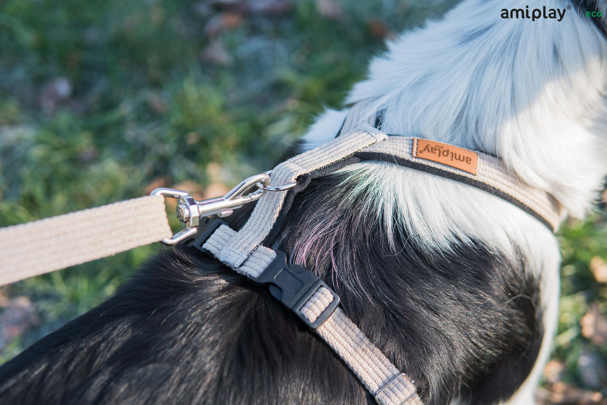Serija amiplay Cotton je zasnovana za tiste, ki radi aktivno preživljajo čas s svojim psom. To je odličen predlog za ljudi, ki cenijo funkcionalnost in raznolikost. Izdelki so narejeni iz močnega 100% bombažnega traku, ki psa ne drgne in ne drgne, kar zagotavlja varnost. Podjetje amiplay izpolnjuje ta pričakovanja z ustvarjanjem visokokakovostnih izdelkov, ki bodo služili zelo dolgo. Umirjene barve in organski bombaž vam omogočajo ustvarjanje kompletov v skandinavskem stilu, ki bodo všeč ljubiteljem naravne lepote.