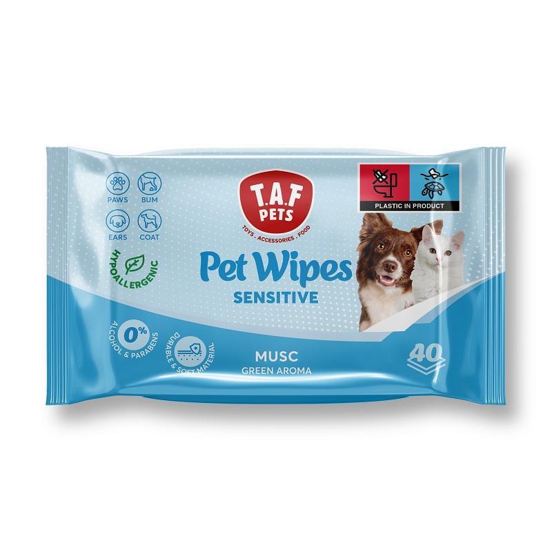 TAF navlaženi robčki za nego psov SENSITIVE – ALOE VERA & KAMILICA – 40kos