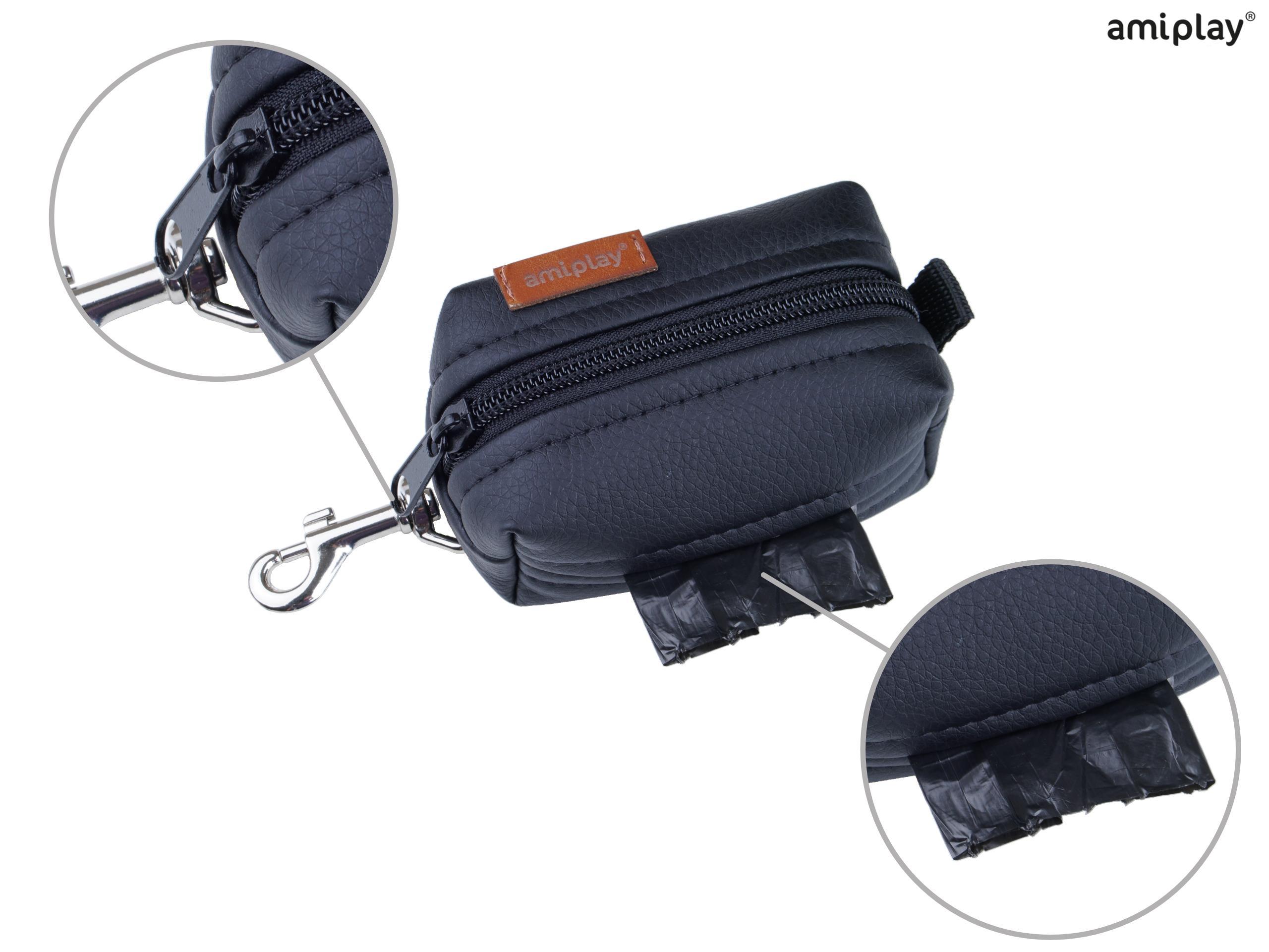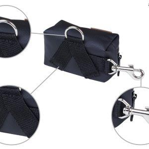 Izdelana je iz zelo trpežnega umetnega usnja. Na strani je luknja za lažji dostop do vrečk, priročna pritrditev na zadrgo pa preprečuje, da bi zvitek izpadel tudi med zelo aktivnim sprehodom.