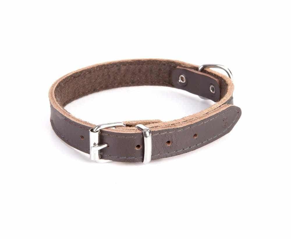 Usnjena ovratnica iz klasičnega usnja podložena s filcem naravne temno RJAVE barve.